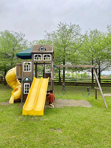 一進去就可以看到園內有泡芙最愛的溜滑梯XD , 還有大草坪,孩子們可以在這裡盡情地奔跑(放電XD)